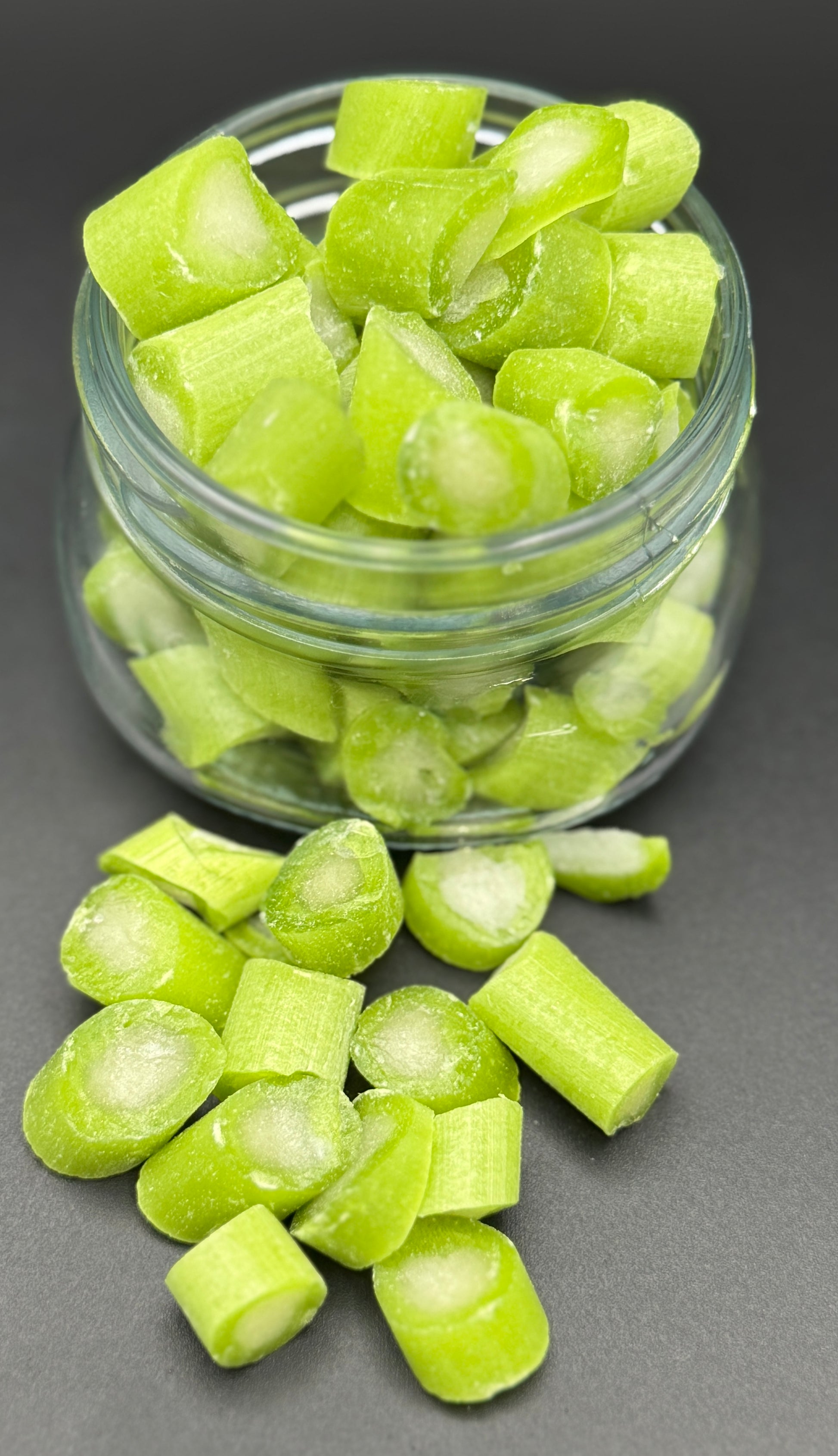 Get ready to pucker up with our Green Apple Hard Candy, a perfectly balanced mix of tart and sweet that captures the classic crisp taste of fresh green apples. Each handcrafted piece gleams with a vibrant green shell and a smooth white center, made using natural and plant-based colors that make it as beautiful as it is delicious.